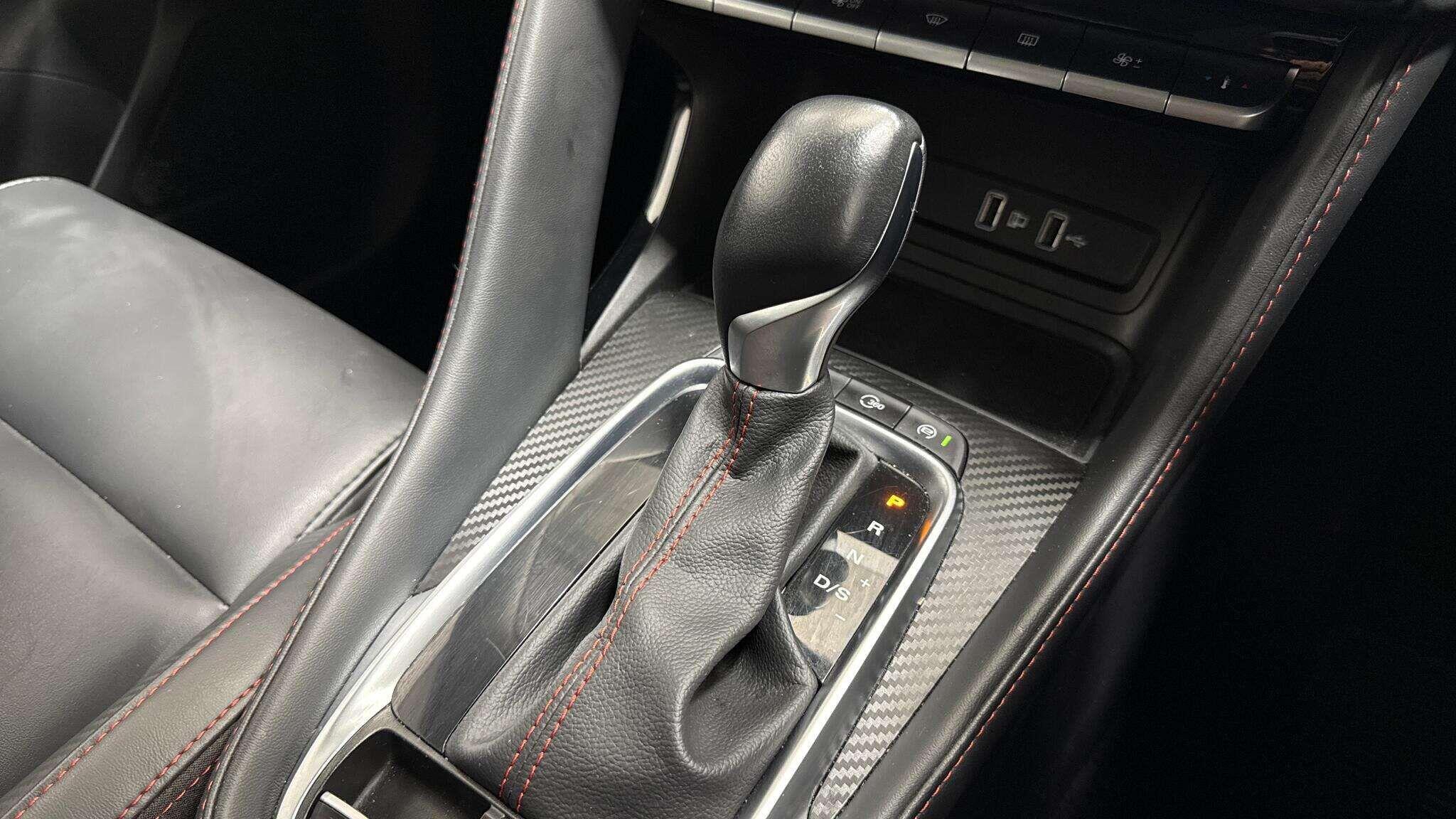 - Leather upholstery with contrast stitching