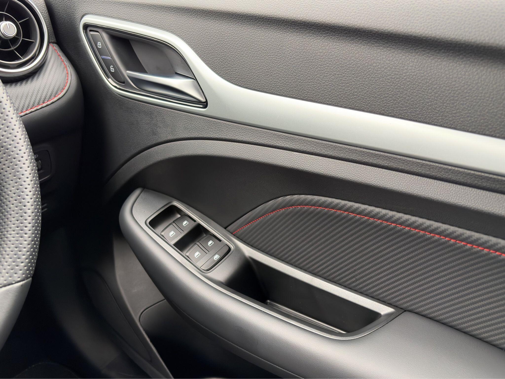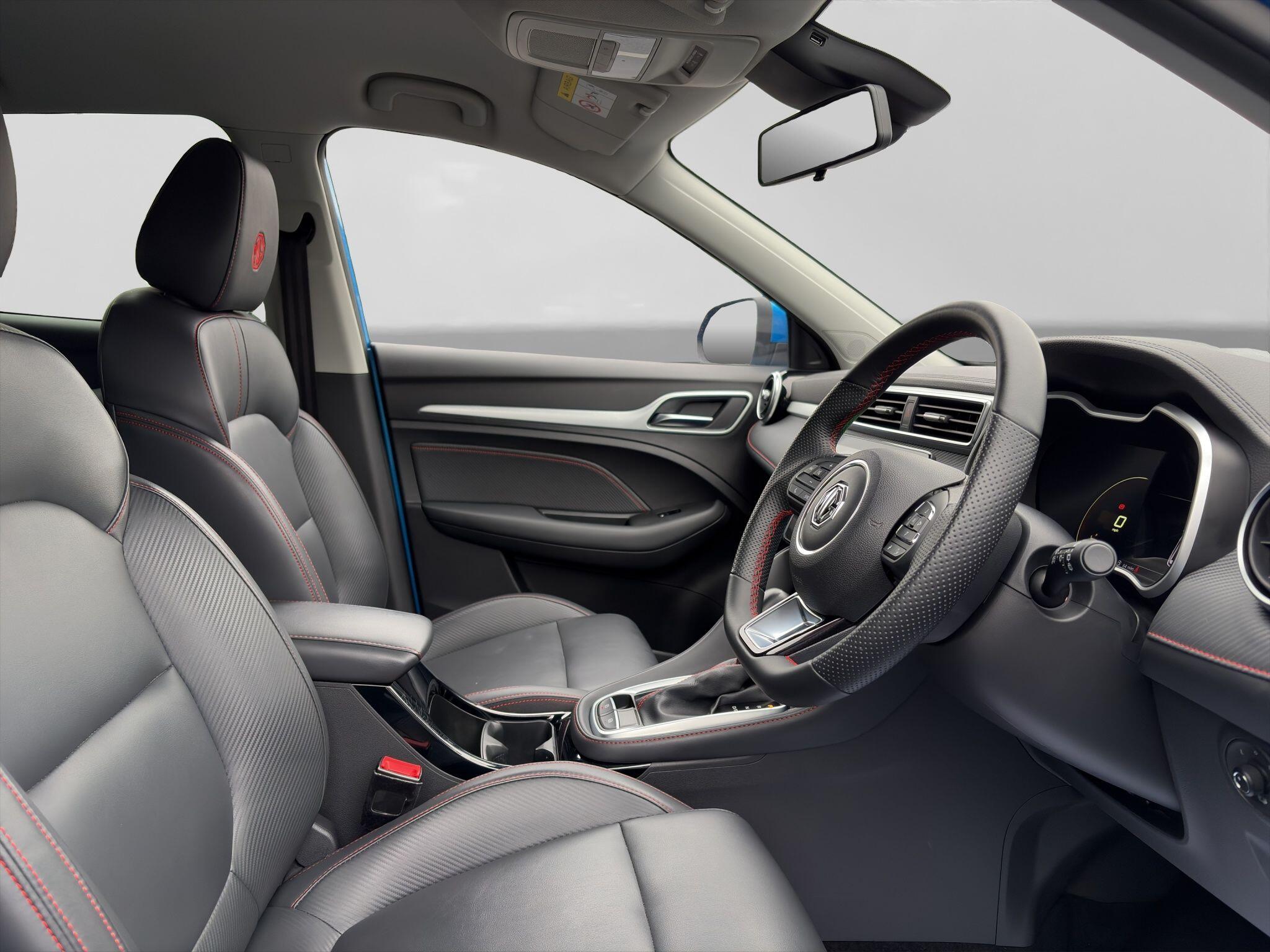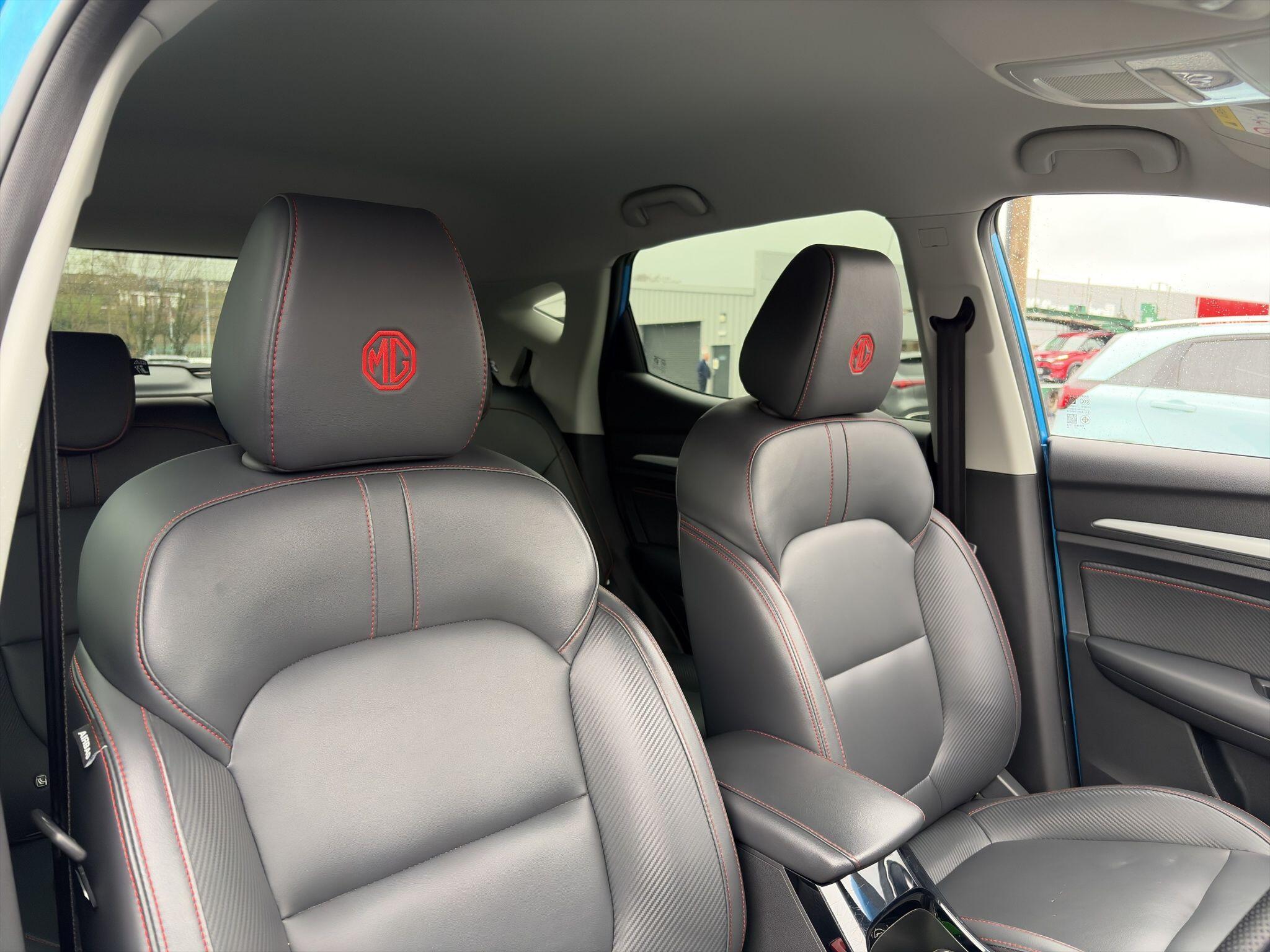 - Leather upholstery with contrast stitching